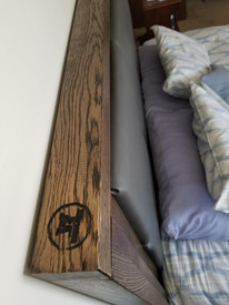 She loved it and so does her family! It was a new challenge for me as I'd never upholstered before but I love growing and learning. We did rustic white oak from @austinhardwoodsofdenver, and stained it charcoal to bring out the greys in the padded panels. Simple bolting to the existing frame and bam, you have yourself a new bed!